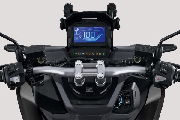 شیشه بادشکن کوچک نصب شده بر پیشانی ADV160 نیز برش‌های خاص و زیبایی دارد،همچون کروزرها، محل قرارگیری پاهای چپ و راست راکب به صورت جداگانه طراحی شده است فرمان ADV160 یک صفحه کیلومتر تمام دیجیتال را می‌توان دید که با خلق و خوی مدرن این اسکوتر مطابقت دارد.